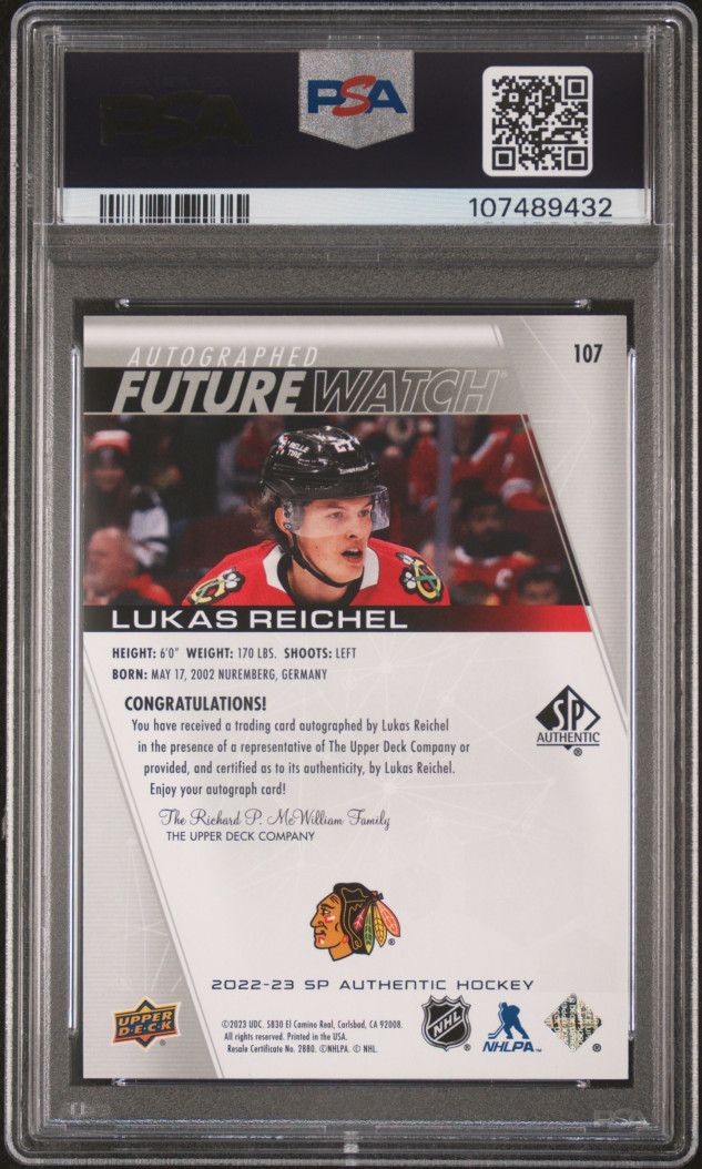 2022 SP Authentic Lukas Reichel Future Watch Autograph PSA 10 Gem Mint
