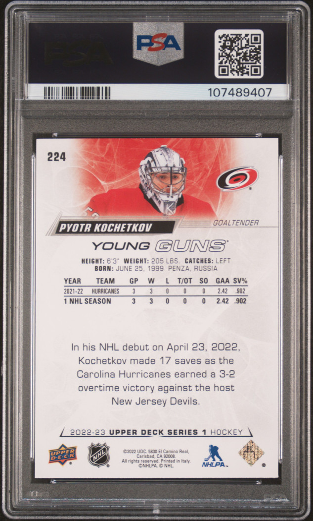 2022 Upper Deck Pyotr Kochetkov Young Guns PSA 9 Mint