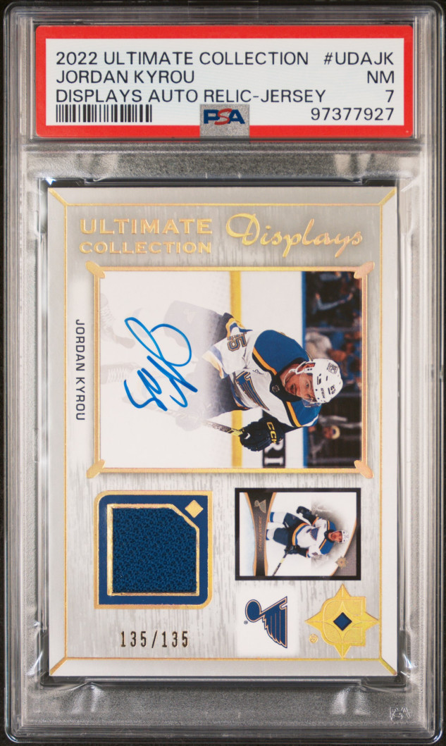 2022 Upper Deck Ultimate Collection Ultimate Displays Auto Relic Jordan Kyrou Displays Auto Relic-Jersey