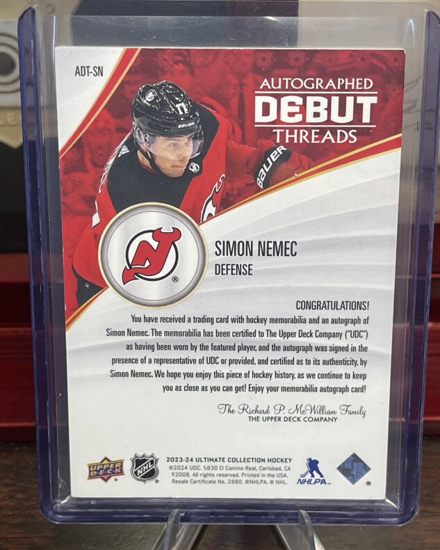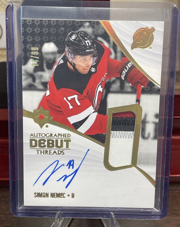 2023-2024 UD Ultimate Collection Debut Threads Rookie Patch Auto RPA Simon Nemec 14 /99 RC