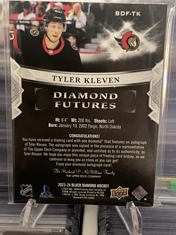2023-24 Black Diamond Futures Purple Tyler Kleven Auto 10/10