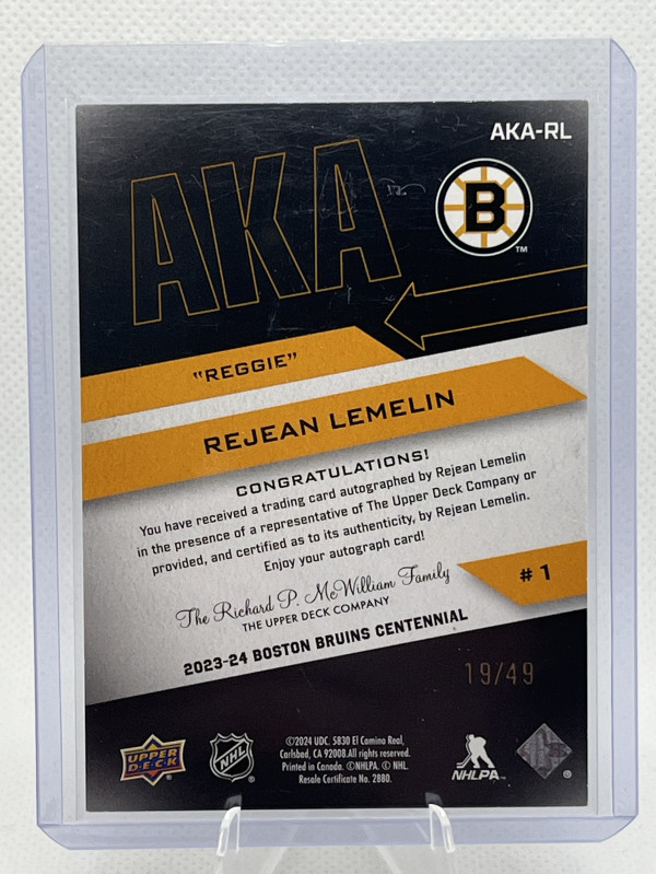 REJEAN LEMELIN 19/49 AKA AUTOGRAPH BRUINS CENTENNIAL 100 YEAR