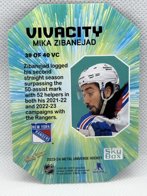 2023-24 Skybox Metal Universe #39 Of 40 VC Mika Zibanejad Vivacity