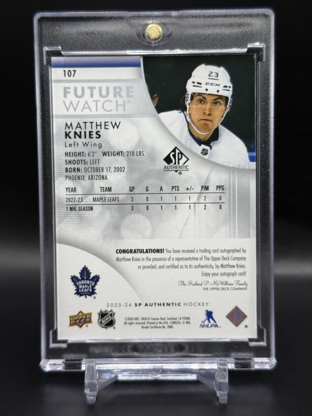 You are purchasing a 2023 SP Authentic Future Watch Auto Matthew Knies #107 Authentic. You will receive the exact item in the photographs. Thank you for looking.