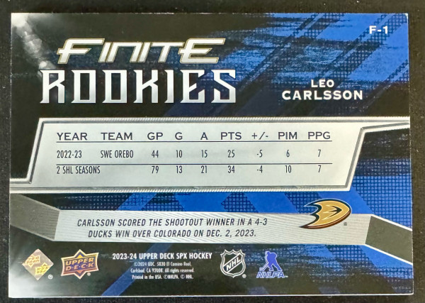 2023-24 SPx Leo Carlsson Finite Rookies Gold /399