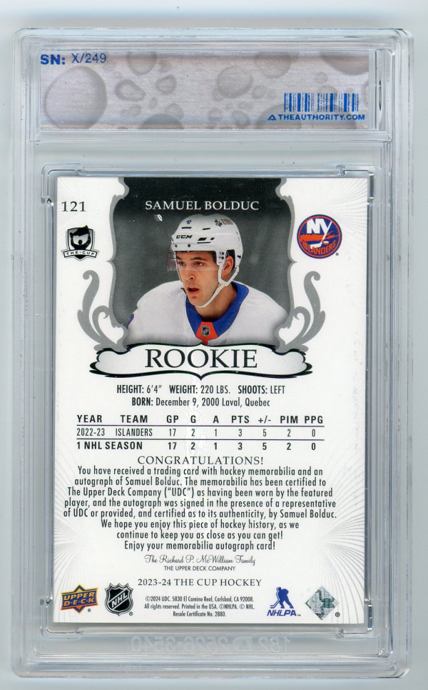 2023-24 The Cup Samuel Bolduc Rookie Auto Patch /249
