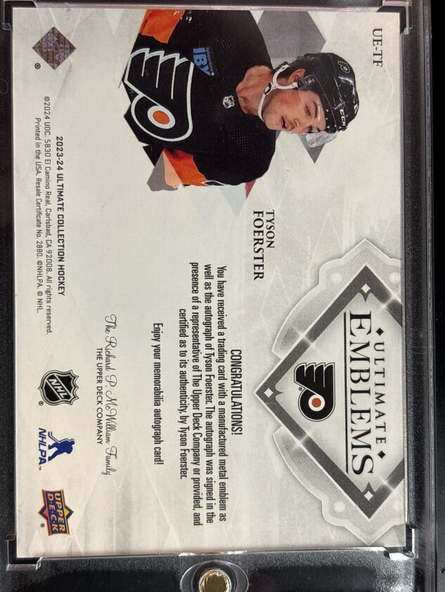 2023-24 Ultimate Emblems Rookie Auto Tyson Foerster
