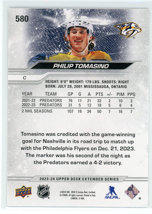 2023-24 Upper Deck #580 Philip Tomasino Deluxe 232/250
