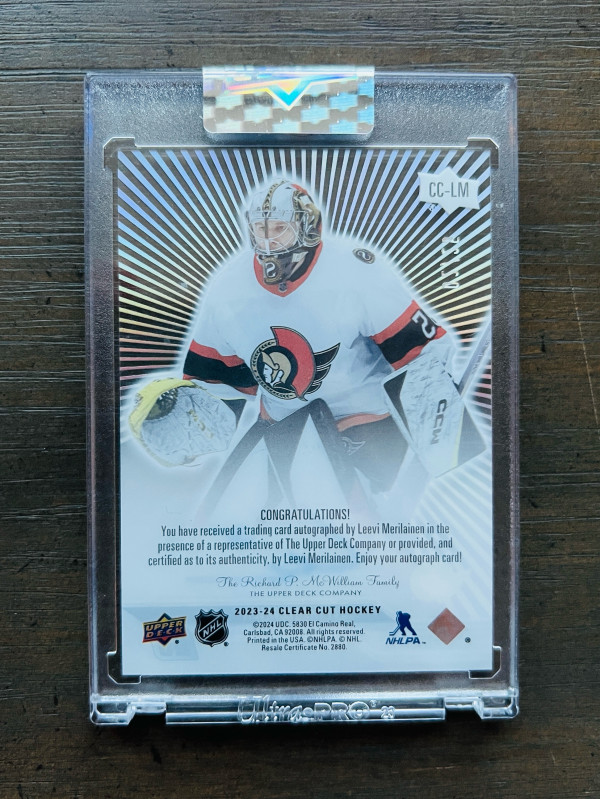 2023-24 Upper Deck Clear Cut Leevi Meriläinen Outburst Rookie Auto /25 #CC-LM