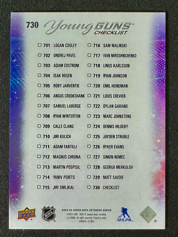 2023-24 Upper Deck Extended Series Adam Fantilli & Logan Cooley Young Guns Checklist