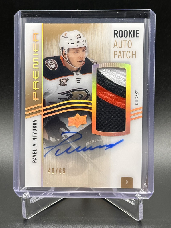 2023-24 Upper Deck Premier Pavel Mintyukov Acetate Gold Rookie Auto Patch (48/65)
