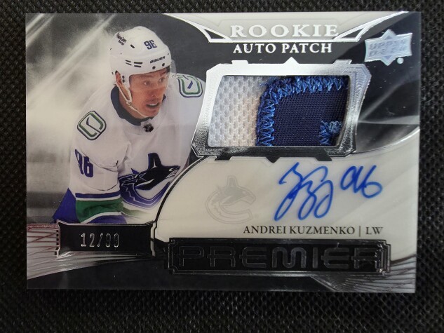 2023-24 Upper Deck Premier Rookie Auto Patch Andrei Kuzmenko Rookie Auto TRI Color Patch /99