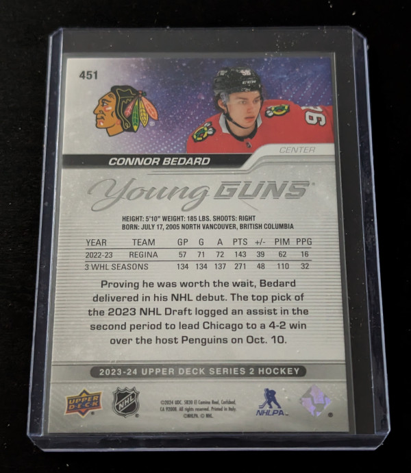 2023-24 Upper Deck Series 2 Hockey - Connor Bedard - Young Guns #451