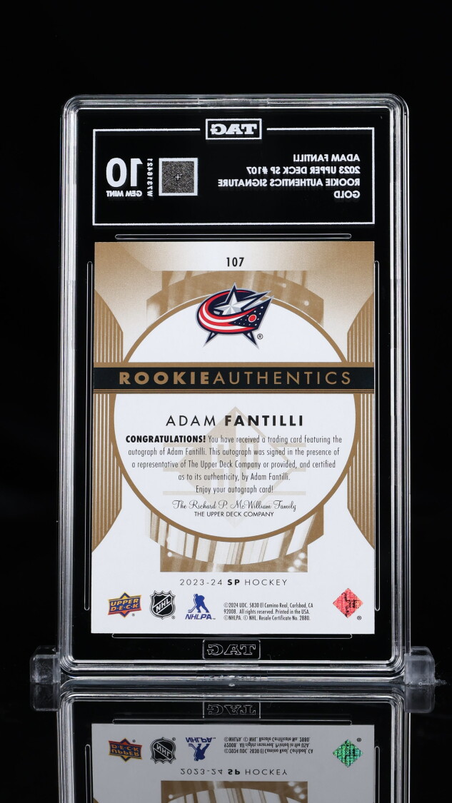 You are purchasing a 2023-24 Upper Deck SP Hockey Adam Fantilli #107 Gold Signature 19/25 Short Print Rookie Low Pop TAG 10. You will receive the exact item in the photographs. Thank you for looking.