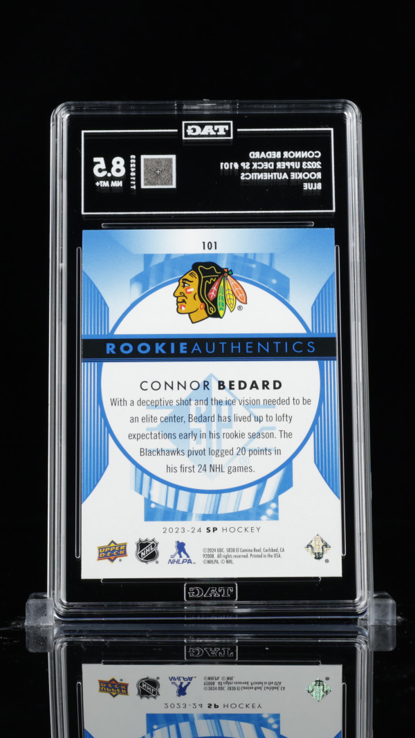 You are purchasing a 2023-24 Upper Deck SP Hockey Connor Bedard #101 Blue Rookie TAG 8.5. You will receive the exact item in the photographs. Thank you for looking.