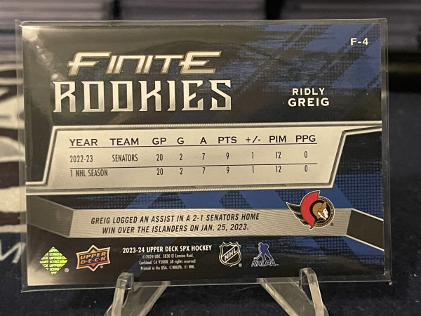 2023-24 UPPER DECK SPx FINITE ROOKIES #F-4 SENATORS - RIDLY GREIG /799