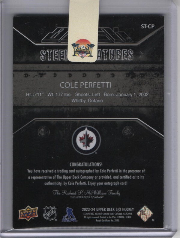 2023-24 Upper Deck SPX Steel Signatures Cole Perfetti