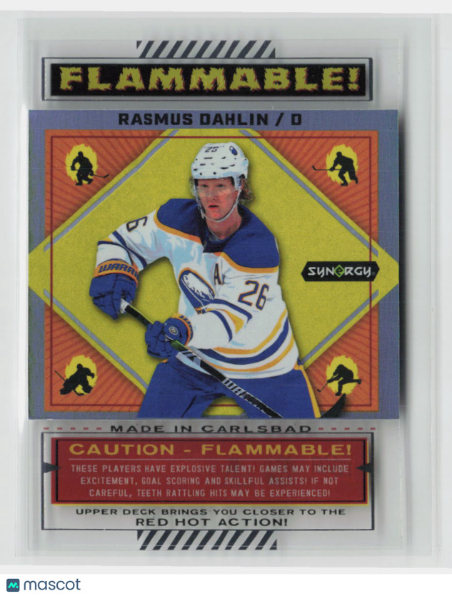 You are purchasing a 2023-24 Upper Deck Synergy Hockey Flammable Rasmus Dahlin #FL-20 Insert Excellent. You will receive the exact item in the photographs. Thank you for looking.