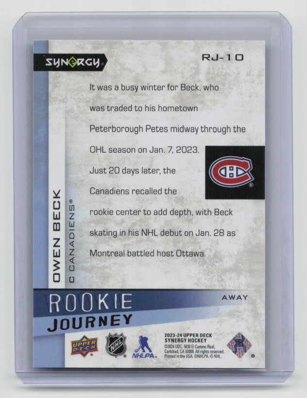2023-24 Upper Deck Synergy Hockey Rookie Journey Owen Beck #RJ-10 Away 382/399