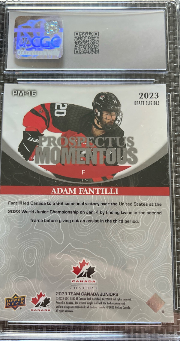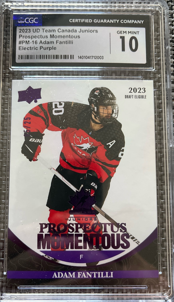 2023–24 Upper Deck Team Canada Juniors Adam Fantilli Electric Purple /25 CGC 10