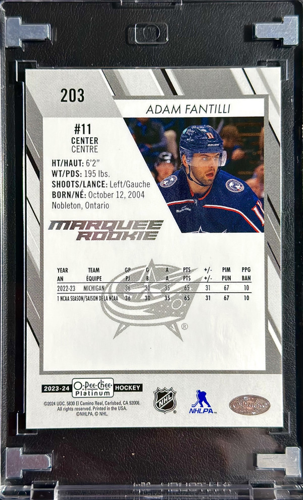 2023 OPC Platinum Adam Fantilli Pond Hockey SSP