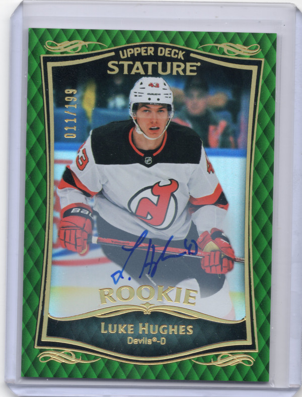 2023 UD Stature Luke Hughes Rookie Auto Green SP 106/199 Devils RC #34