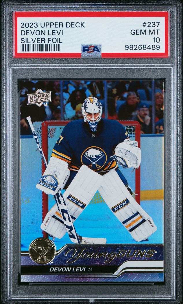 2023 Upper Deck 237 Devon Levi Young Guns Silver Foil PSA 10 Gem Mint