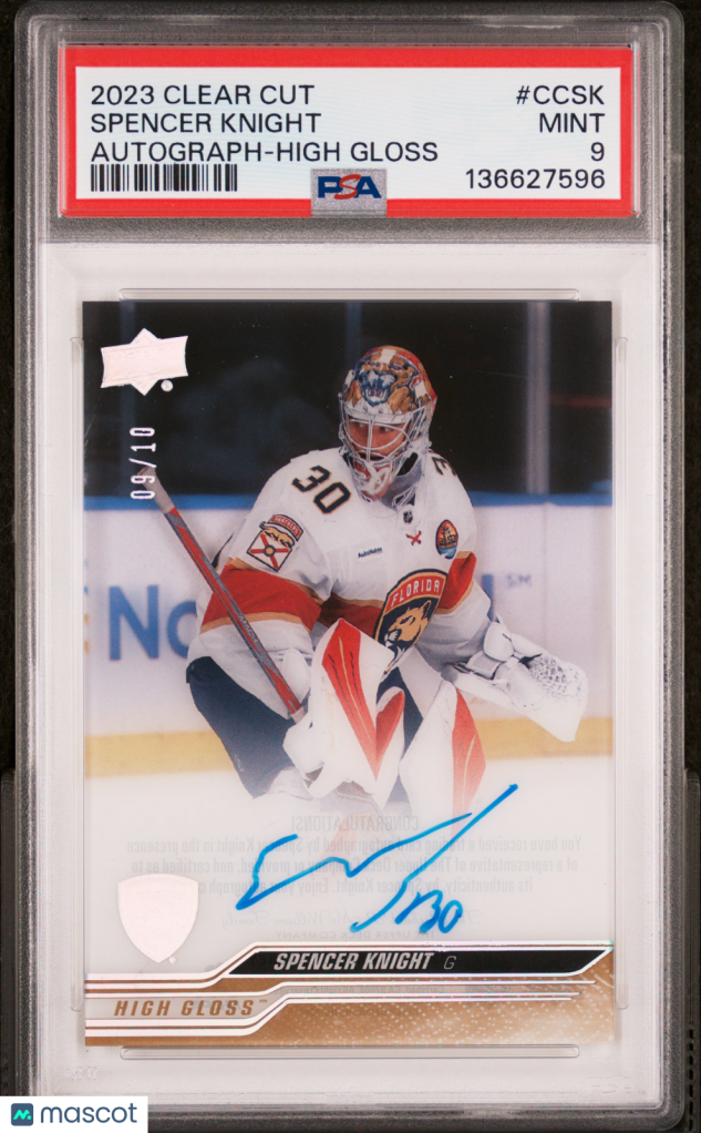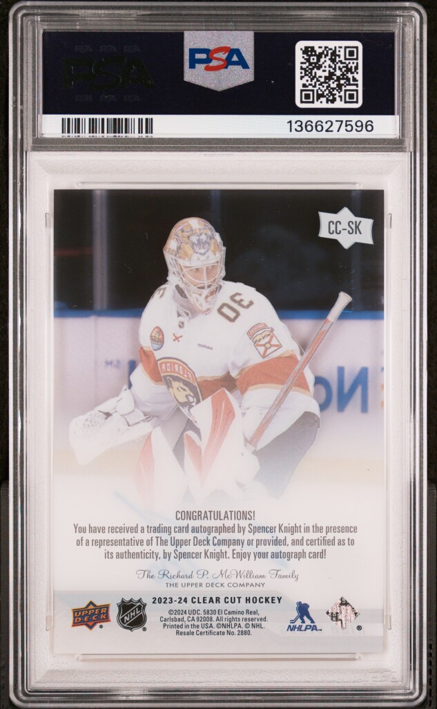 You are purchasing a 2023 Upper Deck Clear Cut Autographs Spencer Knight #CCSK High Gloss Short Print Low Pop 09/10 PSA 9. You will receive the exact item in the photographs. Thank you for looking.