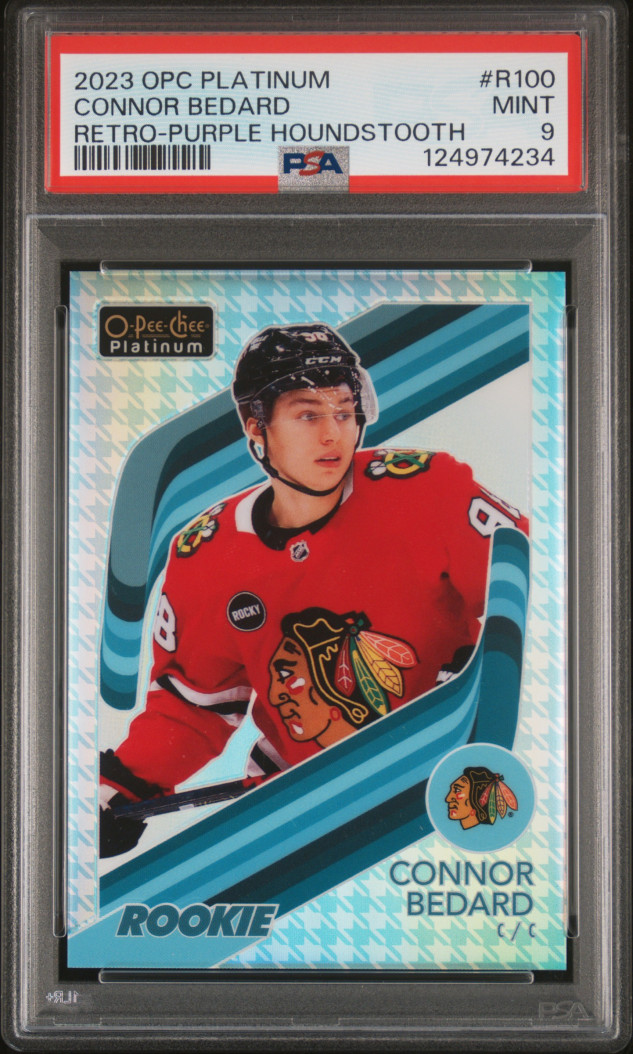 2023 Upper Deck O-Pee-Chee Platinum Retro Connor Bedard Retro-Purple Houndstooth 01/15