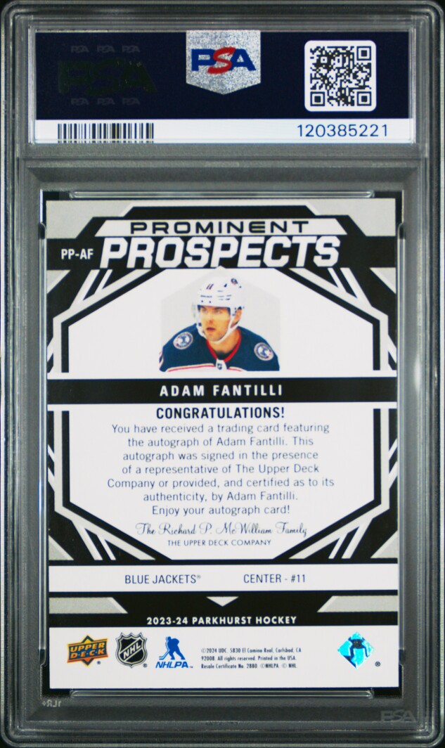 2023 Upper Deck Parkhurst Prominent Prospects Adam Fantilli Prominent Pros-Auto-Red /10