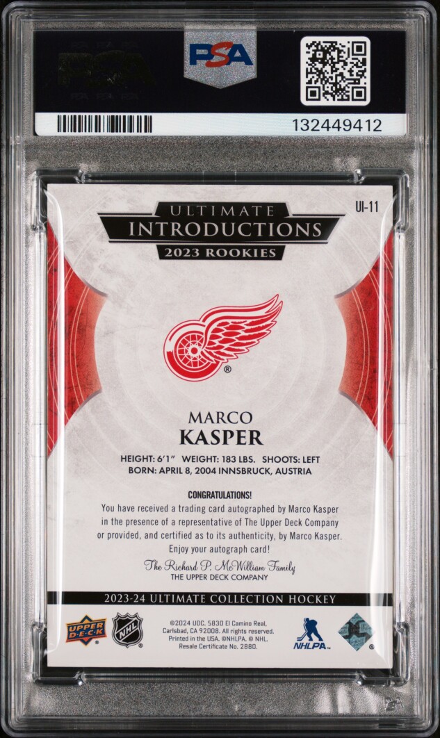 2023 Upper Deck Ultimate Collection Ultimate Introductions Marco Kasper Ult Introductions-Auto