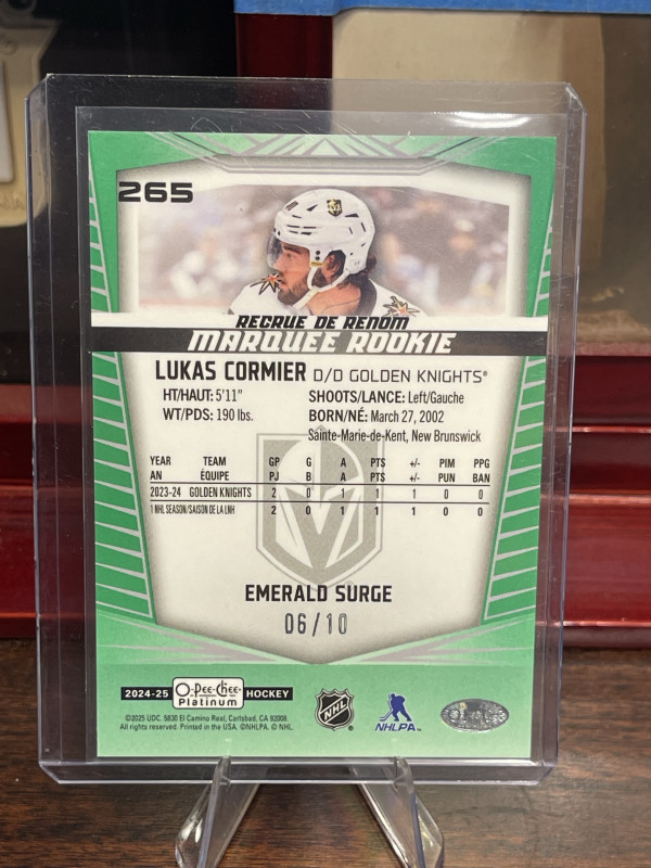 2024-2025 O Pee Chee Platinum Lukas Cormier Marquee Rookie Emerald Surge 06/10 #265