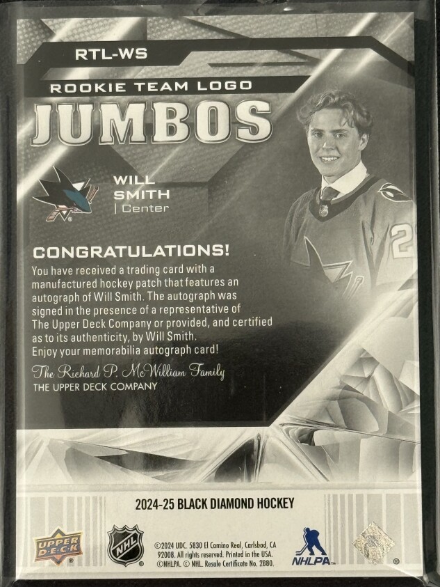 2024-25 Black Diamond - Will Smith - Rookie Team Logo Jumbos - 20/49 - RTL-WS