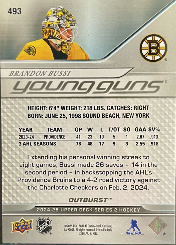 2024-25 Brandon Bussi Silver Outburst young gun