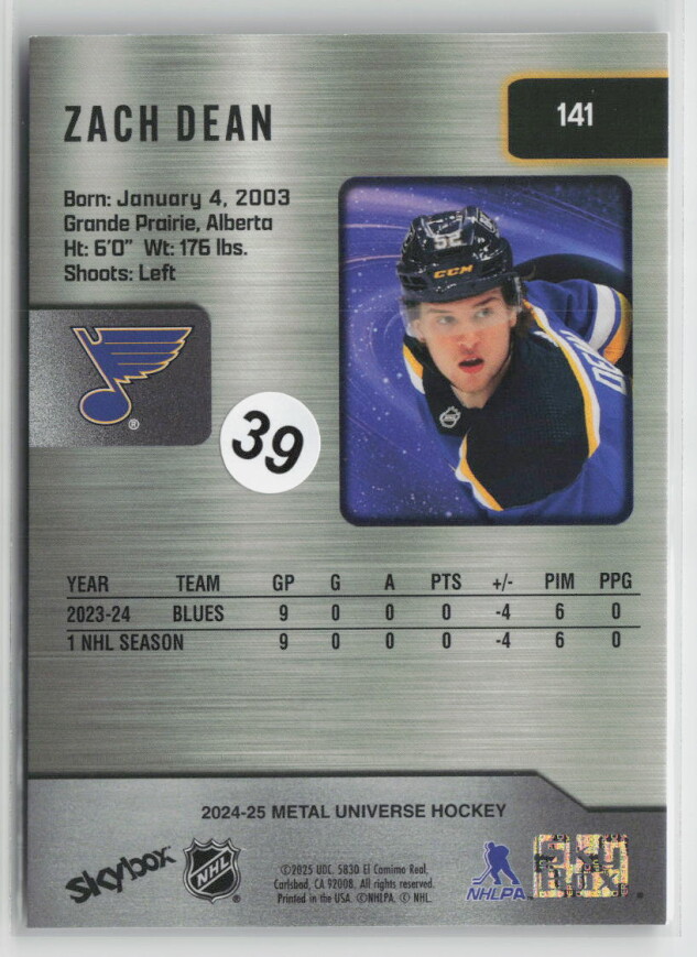 You are purchasing a 2024-25 Metal Universe Hockey Zach Dean #141 Rookie. You will receive the exact item in the photographs. Thank you for looking.