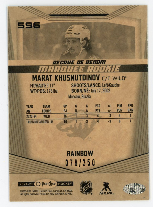 2024-25 O-Pee-Chee #596 Marat Khusnutdinov Rookie Rainbow 78/350