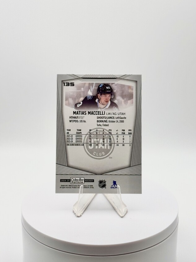 You are purchasing a 2024-25 O-Pee-Chee Platinum Matias Maccelli #135. You will receive the exact item in the photographs. Thank you for looking.