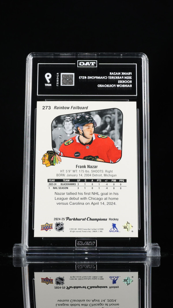 You are purchasing a 2024-25 Parkhurst Champions Frank Nazar #273 Rainbow Foilboard Rookie TAG 9. You will receive the exact item in the photographs. Thank you for looking.