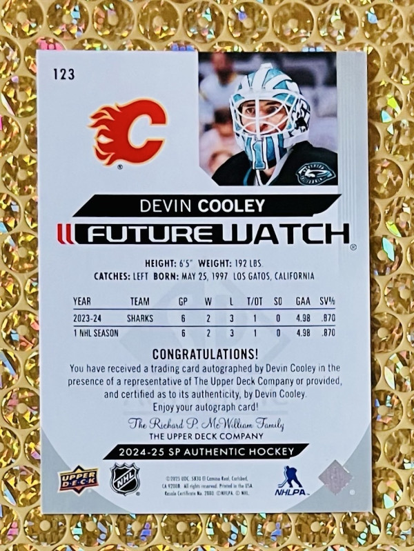 2024-25 SP Authentic #123 Devin Cooley Future Watch Auto RC /999