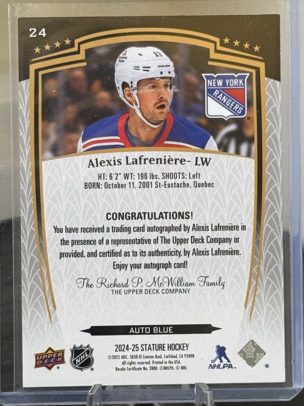 2024-25 Stature Alexis Lafreniere Blue Auto /25