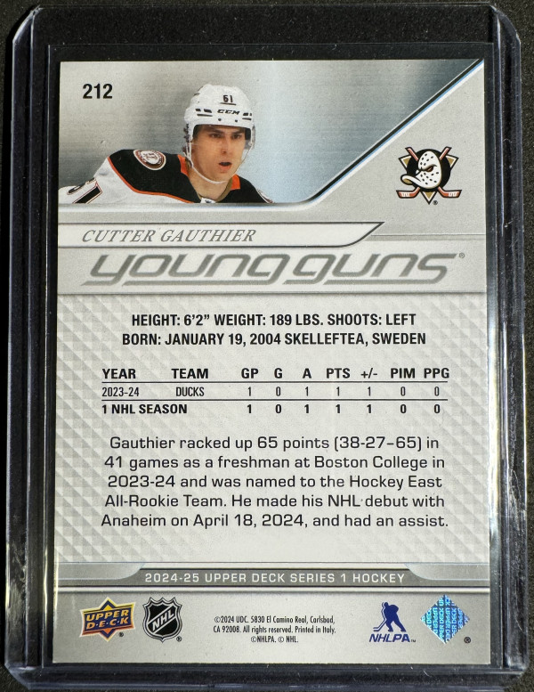 2024-25 Upper Deck 212 Cutter Gauthier Young Guns