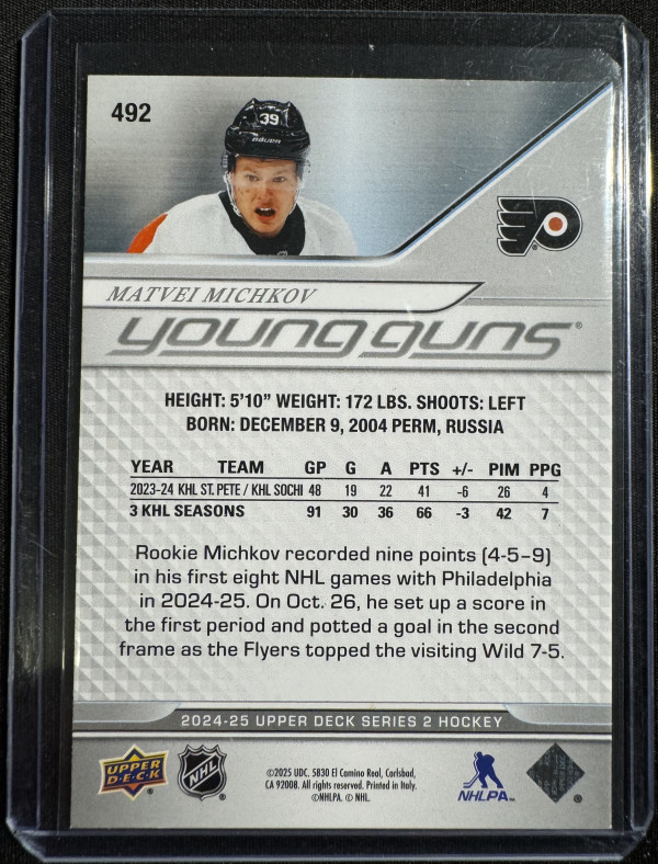2024-25 Upper Deck 492 Matvei Michkov Young Guns