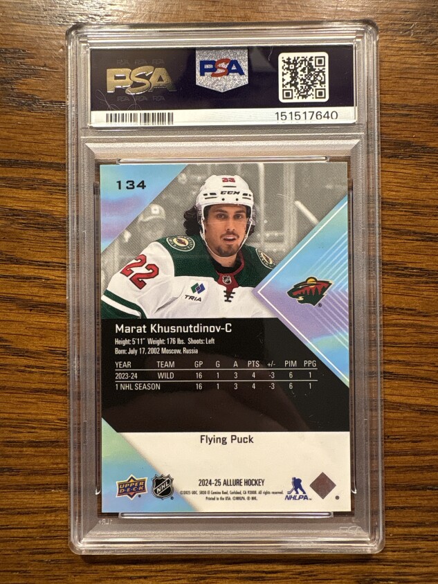 2024-25 Upper Deck Allure Marat Khusnutdinov Flying Puck SSP Rookie PSA 10 Wild