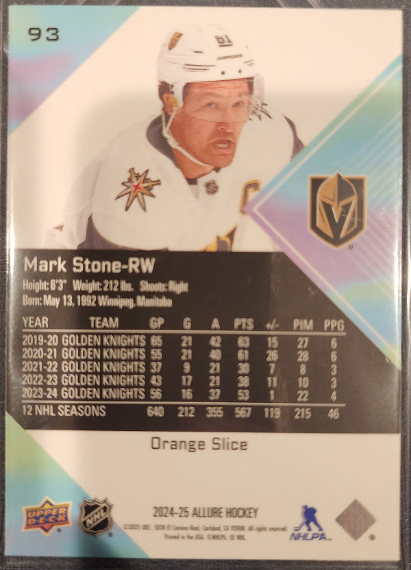2024-25 Upper Deck Allure Mark Stone Orange Slice