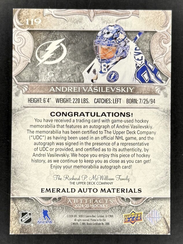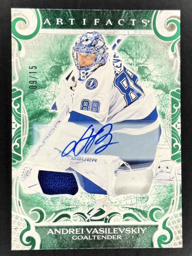 One of the Goats! SSP 9 out of 15 in the Emerald Autographed game used Material parallel.