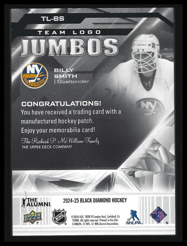 2024-25 Upper Deck Black Diamond BILLY SMITH Team Logo Jumbos Patch Relic