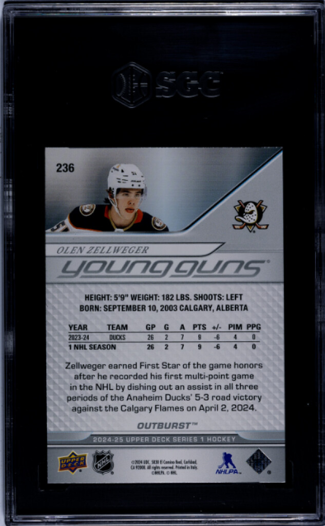 2024-25 Upper Deck Olen Zellweger SGC 9