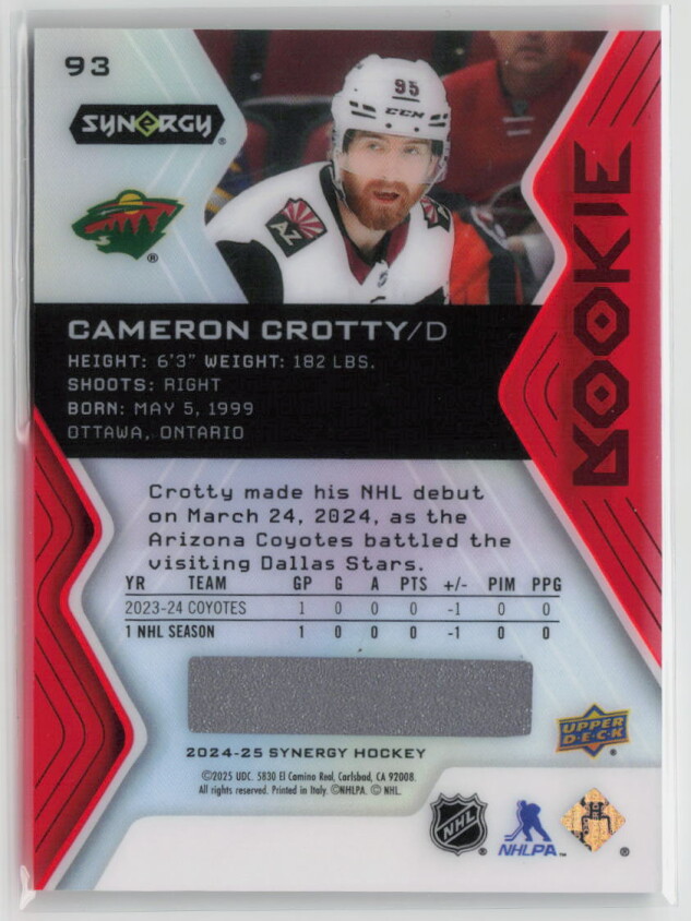 You are purchasing a 2024-25 Upper Deck Synergy Hockey Cameron Crotty #93 Unscratched Code Rookie. You will receive the exact item in the photographs. Thank you for looking.