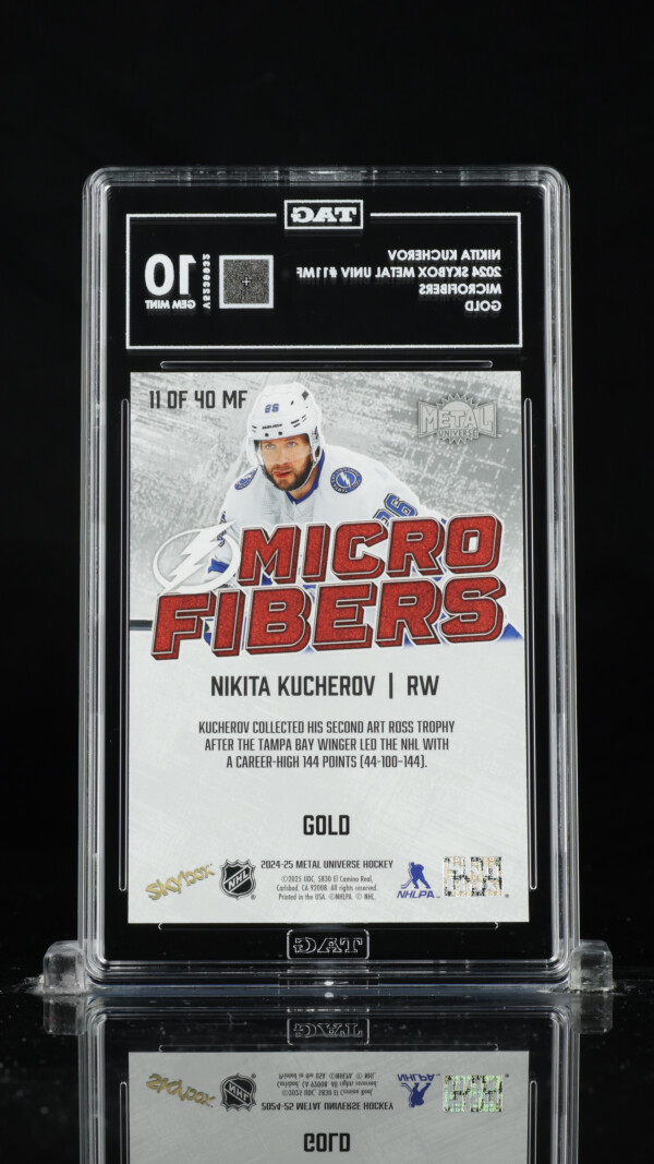You are purchasing a 2024 SkyBox Metal Universe Microfibers Nikita Kucherov #11MF Gold Short Print /10 TAG 10. You will receive the exact item in the photographs. Thank you for looking.