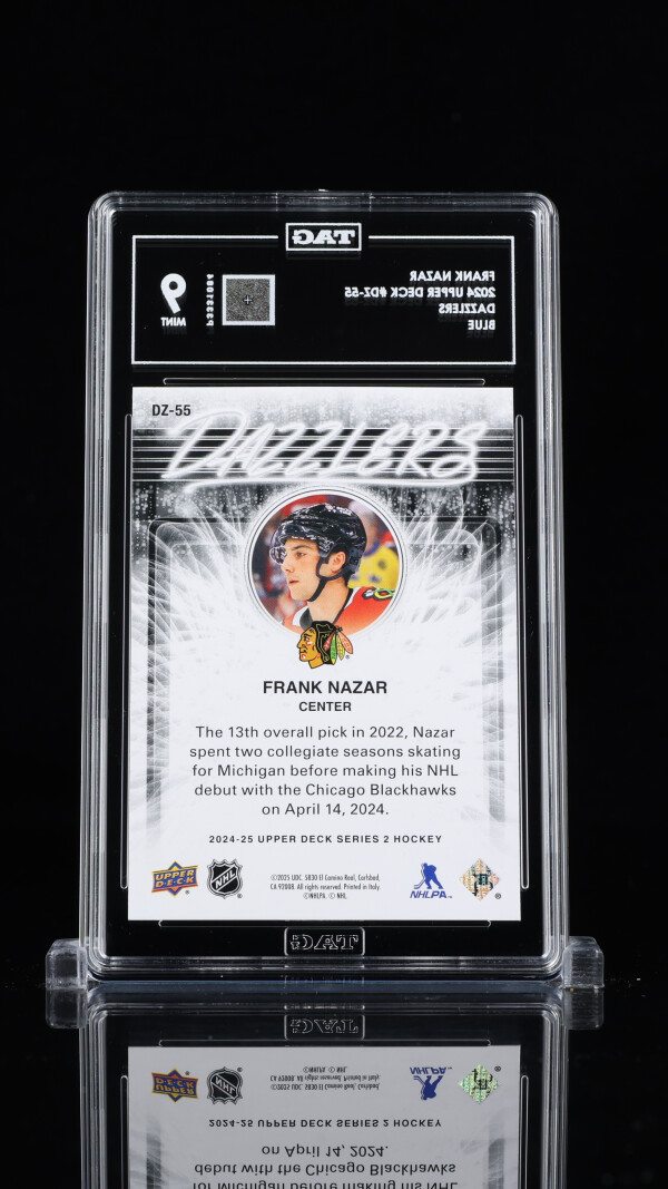 You are purchasing a 2024 Upper Deck Dazzlers Frank Nazar #DZ-55 Blue Rookie TAG 9. You will receive the exact item in the photographs. Thank you for looking.